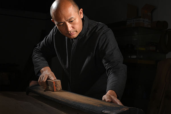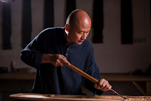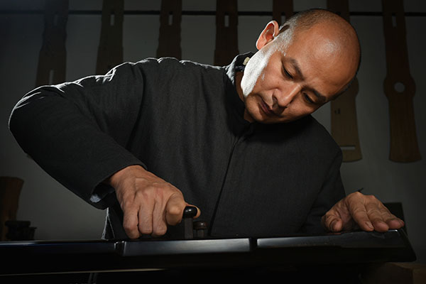 当灰胎全部光洁平滑后,这是古琴的漆艺阶段。古琴的漆艺有很多种作法,主要分为:底涂、中涂和上涂。每一遍面漆都要经过打磨,而且打磨用的砂纸,要由粗到细,最后推光擦漆,直到完成。古琴的漆艺还有其他的作法,但是无论什么样的方法,都必须可以使古琴高古温润,含蓄朴素,更要长期耐磨。 |